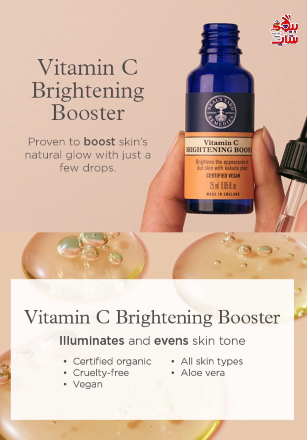 با تجربهای بینظیر از پوست درخشان و جوان، ویتامین سی و اسید هیالورونیک Neal's Yard Remedies را امتحان کنید! این محصول اورجینال 25 میلیلیتری با عصاره آلوئه Kakadu و ترکیبات پیشرفته، پوست شما را روشن و شاداب میکند و کمک میکند تن پوست را یکنواخت سازید. پوستی جذاب و پلامپ، همین حالا تجربهاش کنید!