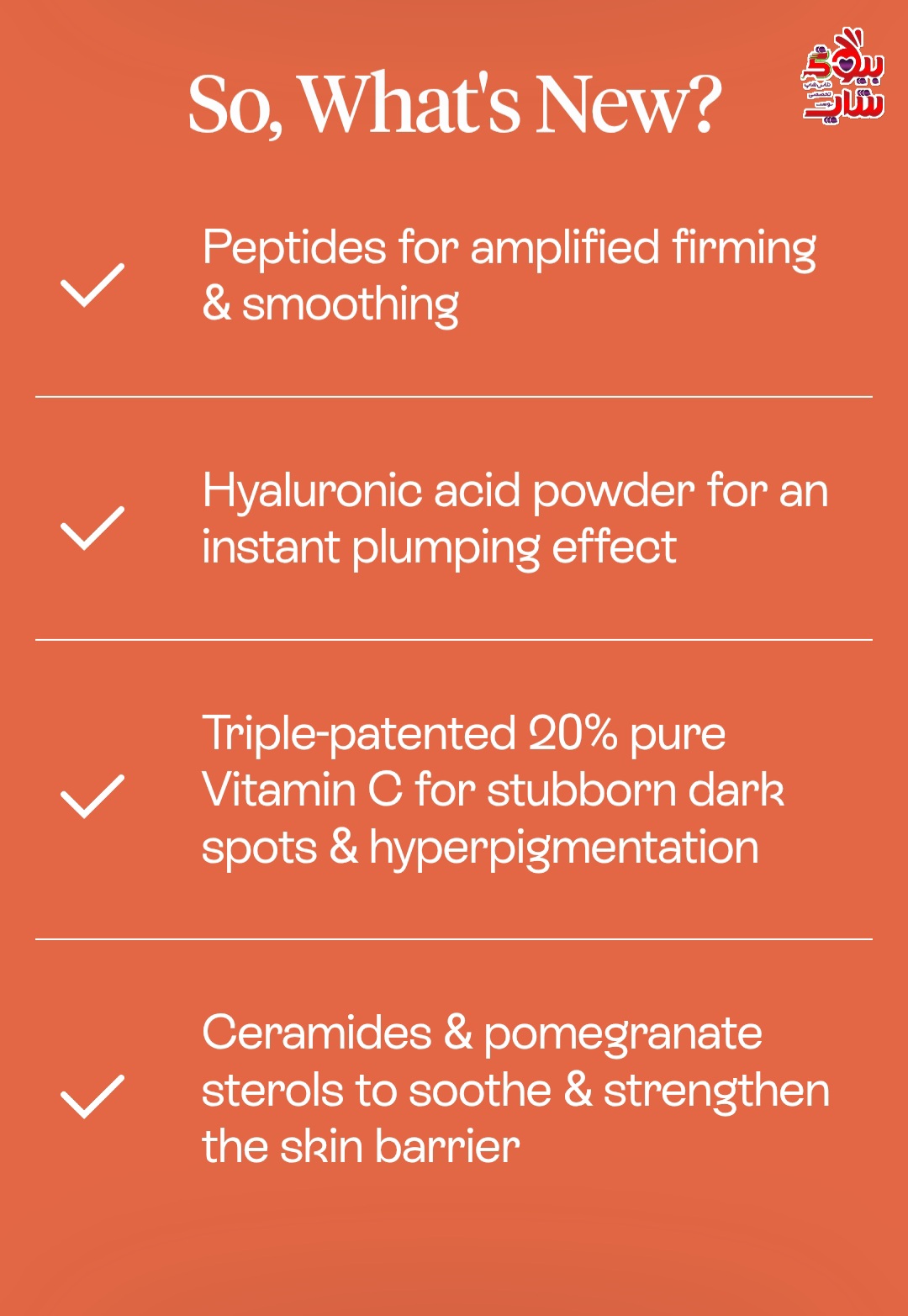 با سرم ویتامین سی ضد لک و ضد چروک BeautyStat، پوستی بیعیب و جوان را تجربه کنید! این محصول اورجینال با فناوری Chem-C و ویتامین C سه بار پتنت شده، به همراه پپتیدها، 20% اسید L-Ascorbic خالص به طور موثر لکههای تیره را کاهش میدهد.استادان نوآوری در ویتامین C بیوتیاستات، به رهبری ران رابینسون، اسید ال-آسکوربیک خالص و پایدار 20% خود را به یک دسته جدید و پیشگامانه تبدیل کردهاند که آن را «روشنکننده» مینامند - جایی که روشنکنندگی پیشرفته با عملکرد قدرتمند ضد پیری ترکیب میشود. نسل بعدی اصلاحکننده پوست یونیورسال سی ما را معرفی میکنیم که اکنون با ترکیبی همزمان از پپتیدها تقویت شده است با فناوری Chem-C™ ما، مزایای جوانسازی را تقویت میکند. فرمول دوکاره ما از ویتامین C سهگانه و منحصر به فرد، با پپتیدهای قدرتمند ترکیب میشود تا فرمولاسیون ما را تقویت کند و سفتکنندگی و صافکنندگی بهبود یافته را ارائه دهد، در حالی که اسید ال-آسکوربیک خالص 20% ما، لکههای تیره سرسخت، رنگ ناهموار و هایپرپیگمنتاسیون را هدف قرار میدهد. پودر اسید هیالورونیک نوآورانه، یک اثر حجمدهنده فوری روی پوست ایجاد میکند