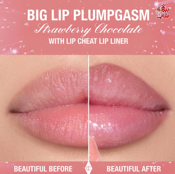 لیپ گلاس حجم دهنده و شایندار جدید شارلوت تیلبری رنگ STRAWBERRY CHOCOLATE فولسایز اورجینال CHARLOTTE TILBURY BIG LIP PLUMPGASM STRAWBERRY CHOCOLATE Pink plumping lip gloss with diamond sparkle that makes lips look bigger + plumper