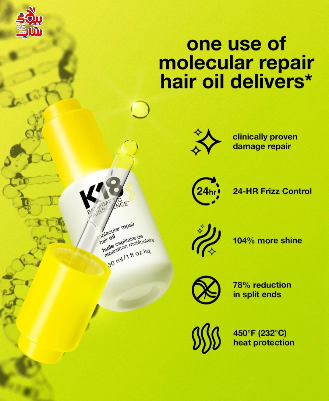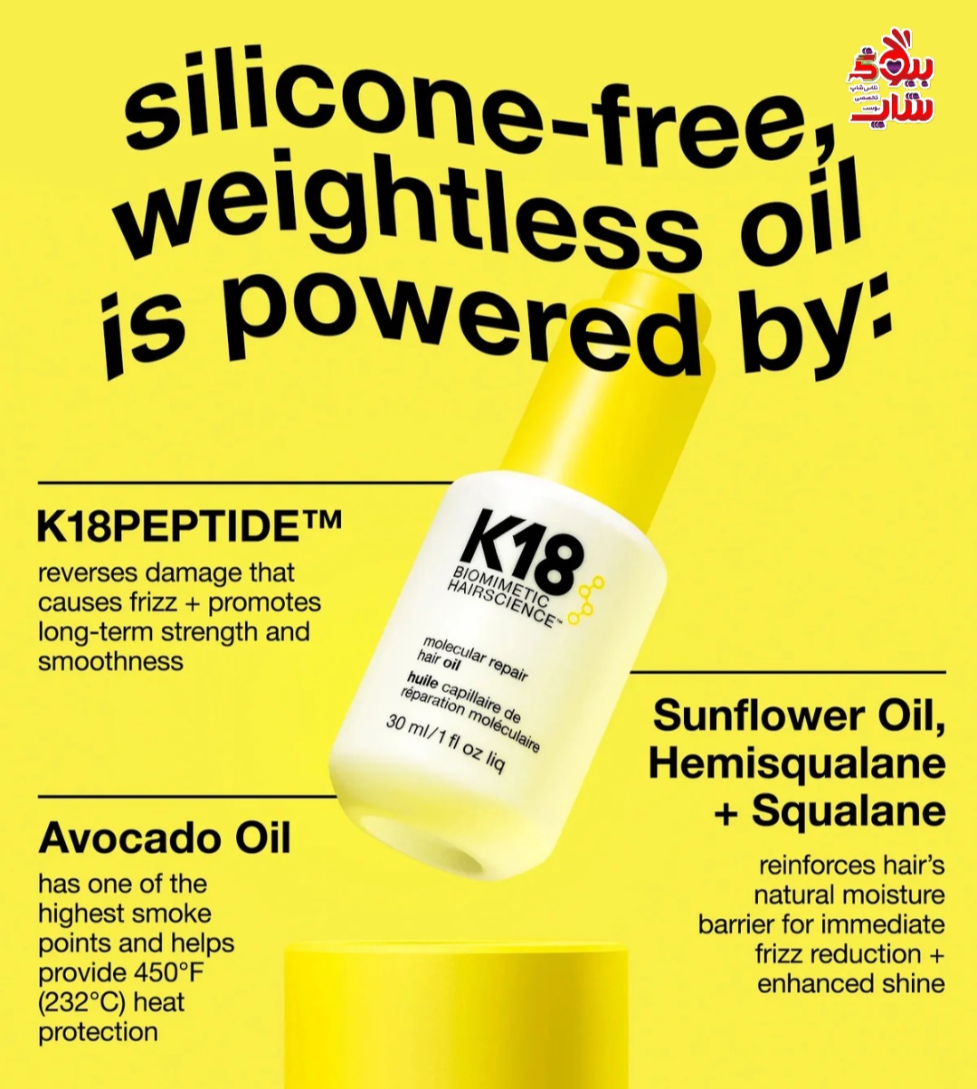 روغن موی ترمیم کننده k18 BIOMIMETIC HAIRSCIENCE حجم ۳۰میل اصل اروپایی Molecular Repair Hair Oil - K18 Biomimetic Hairscience
