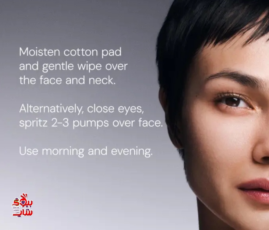 Step 1: Moisten cotton pad and gently wipe over the face and neck.