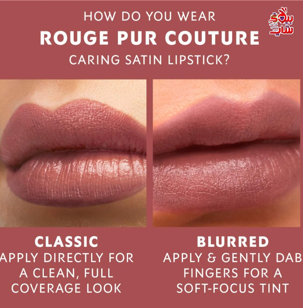 Clinical Results: In a consumer test with 300 women using the Rouge Pur Couture Pure Color-In-Care Satin Lipstick, results showed: -16 hours of protection and comfort feel -97% Formula glides effortlessly on lips -96% Satin formula feels soft on lips -87% Lips feel moisturized -85% Lips look healthier