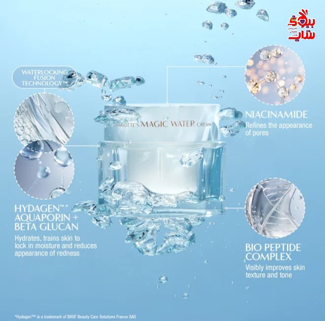 بهترین مرطوبکننده برای پوست مستعد آکنه در جوایز پوست و موی ماری کلر ۲۰۲۴.عزیزان، پوست شما تشنه است! با کرم آب جادویی شارلوت، مرطوبکننده ژل-کرم فوری احیاکننده پوست من، پوست خود را با ۱۰۰ ساعت آبرسانی* خیس کنید تا درخششی شبنممانند، شیشهای و تازه داشته باشید!جادوی پوست با اعتماد به نفس را با این فرمول ژل-کرم سبک و بدون عطر که ظاهر چهره شما را صاف و پر میکند و به تعادل پوست تشنه و کمآب کمک میکند، آزاد کنید.خیس کنید. احیا شوید. همین حالا! مثل یککرم آب، مثل یک کرم جادویی احیا میکند!کرم آب جادویی شارلوت، با ترکیب مزایای آبرسانی یک کرم آب و اثرات فوری احیای پوست کرم جادویی معروف شارلوت من، از نظر بالینی ثابت شده است که ظاهر منافذ، قرمزی + خطوط کمآبی را کاهش میدهد.نیاسینامید + عصاره متعادلکننده چربی - ظاهر منافذ را کاهش میدهد و به متعادلسازی پوست چرب و مختلط کمک میکند.کمپلکس بیوپپتید - برای بهبودظاهر رنگ و بافت پوست، افزایش درخشندگی و کاهش خطوط ریز برای پوستی صافتر و سفتتر