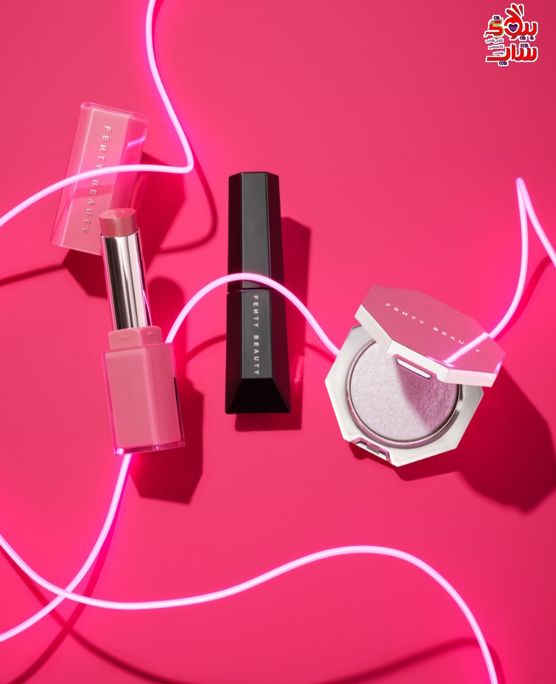 ست فنتی بیوتی هایلایتر، رژ لب و ریمل اورجینال FENTY BEAUTY FENTYS-FINEST-3-PIECE- FACE-EYE-LIP-KIT