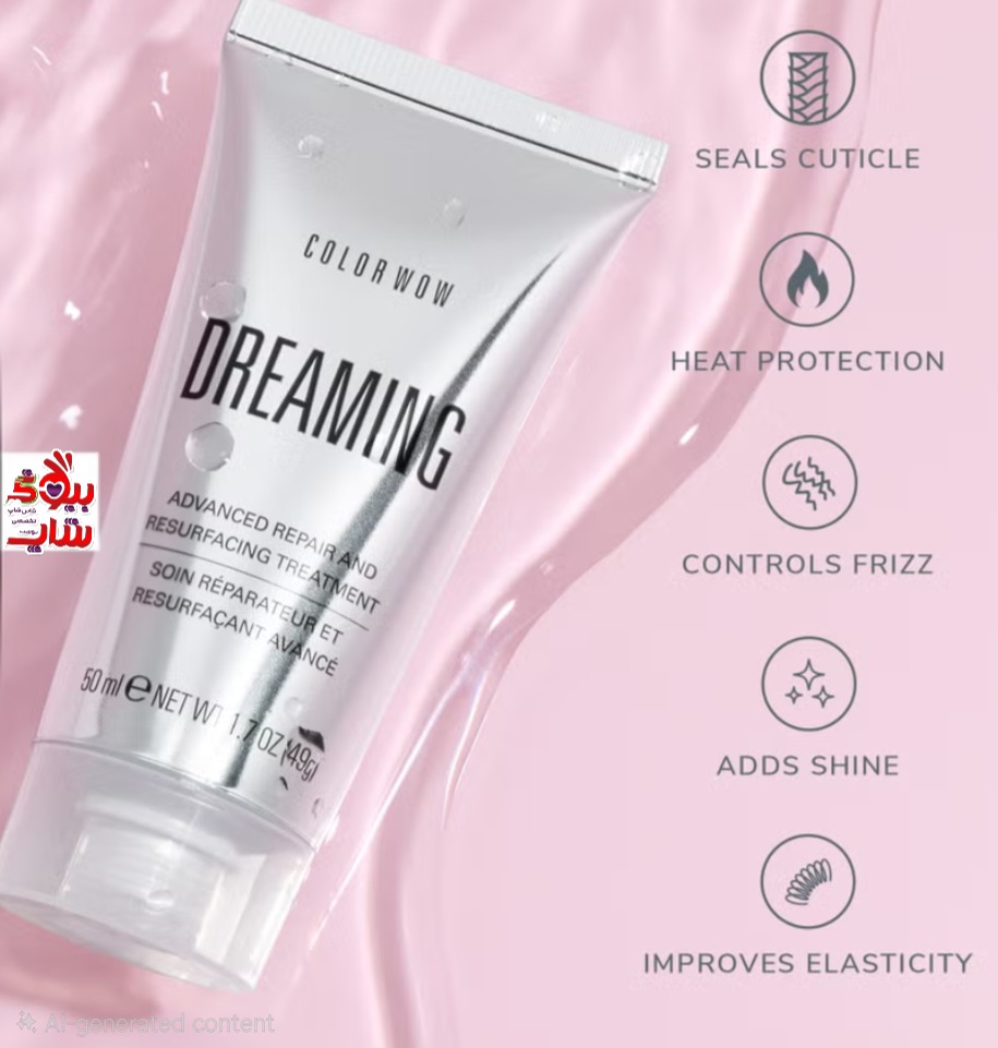 ماسک ترمیم و بازسازی پیشرفته رویایی مو کالر واو اورجینال 50میل COLOR WOW Dreaming Advanced Repair and Resurfacing Treatment Anti-frizz, anti-damage hair smoothing treatment refinishes and visibly repairs fluffy, frizzy, damaged strands