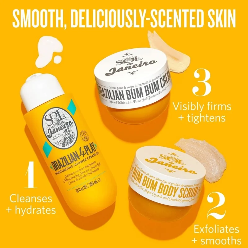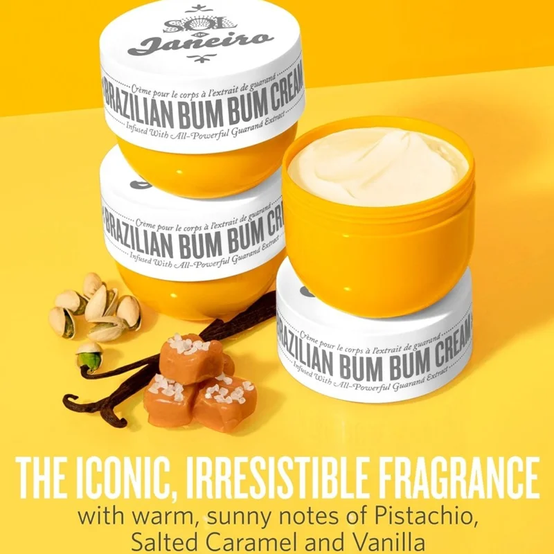 کرم بدن سفت کننده و صاف کننده برزیلی بوم بوم سول دی ژانیرو محصول آمریکا یک کرم بدن فوقالعاده مغذی و رطوبت رسان است ،این کرم بدن فرمولاسیون بسیار غنی داشته و حاوی عصاره گوارانا ،کره کاپواچو، روغن آکای، روغن نارگيل و روغن آجیل برزیلی می باشد .این کرم بدن پوست را عمیقا تغذیه می کند و خشکی پوست را از بین برده و باعث استحکام و افزایش الاستیسیته پوست می شود.شلی پوست به دلیل افزایش سن پوست بدن را پیر تر نشان می دهد که این کرم با افزایش قوام پوست و سفت کردن پوست ظاهر بدن را جوانتر و زیباتر می کند.رایحه این کرم گرم و خوش طعم و اعتیاد آور وانیل ،پسته و کارامل نمکی و شور می باشد.این کرم بدن برنده جوایز متعدد زیبایی شده و به عنوان راز زیبایی برزیلی معروف است این محصول به دلیل دارا بودن عناصر و ترکیبات مغذی متعدد پوست را صاف ، سفت و زیبا می کند.جذب سریع دارد و درخشش و زیبایی خیره کننده به پوست می بخشد.جریان خون محیطی پوست بالا رفته و از پوست در برابر عوامل محیطی، آلودگی ها و آسیب های فیزیکی محافظت میکند.این کرم پوست را نرم ،ابریشمی و مرطوب می کندو آنرا شاداب و جوان میکند. و بدون تست حیوانی.
